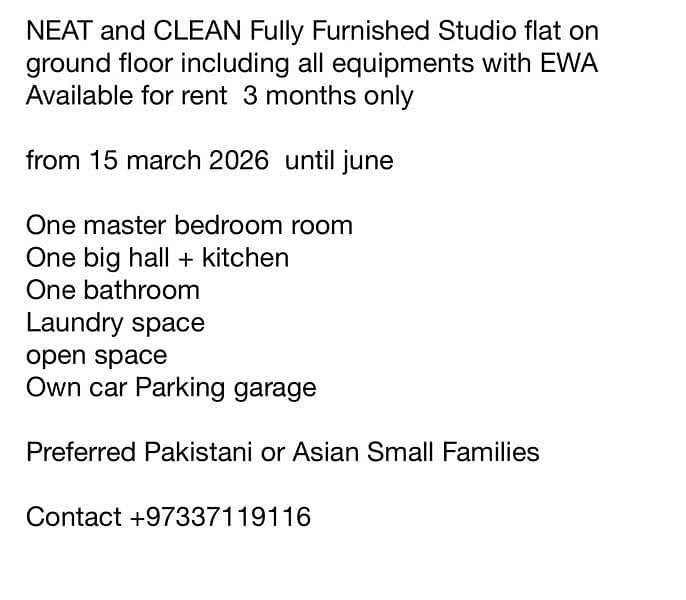 اطلب فيديوشقة من غرفة نوم واحدة للإيجار في عراد، محافظة المحرق