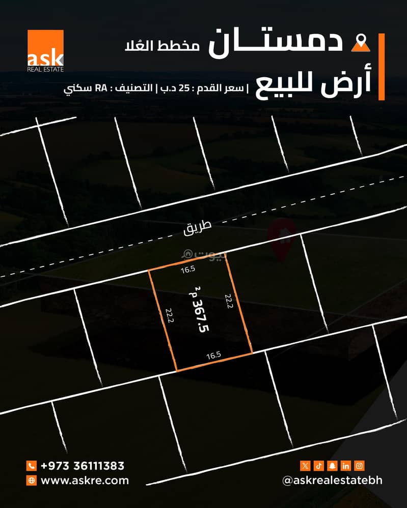 اطلب فيديوأرض سكنية للبيع في الدميستان، المحافظة الشمالية