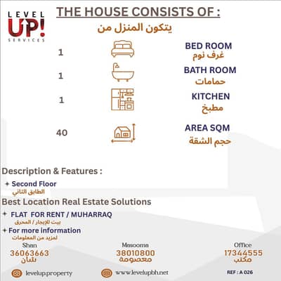 Discover the perfect living space in this 1-bedroom apartment located in the heart of Muharraq. This cozy unit offers everything you need for comfortable living at an affordable monthly rent of just 100.